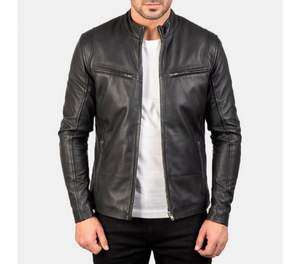 NOORA Men's Real Lambskin Leather Black Motorcycle Zipper Jacket – Noora International