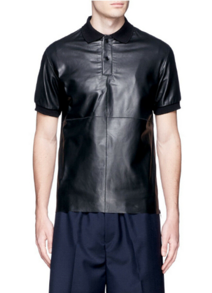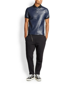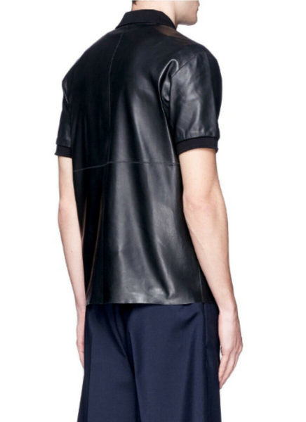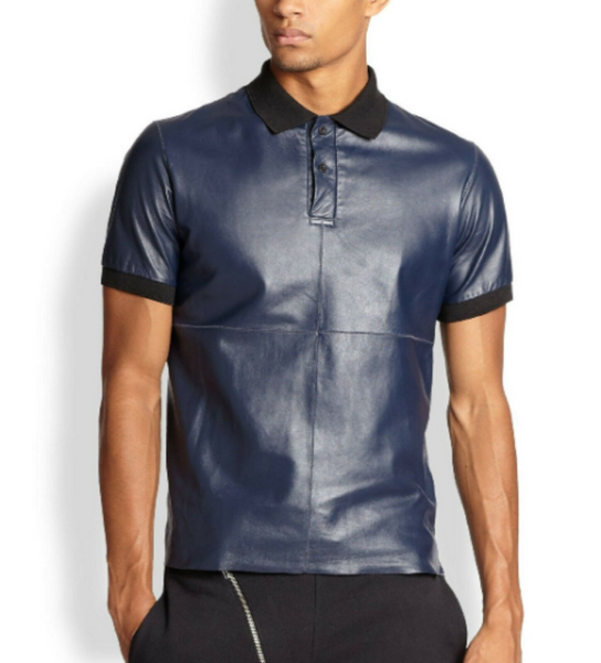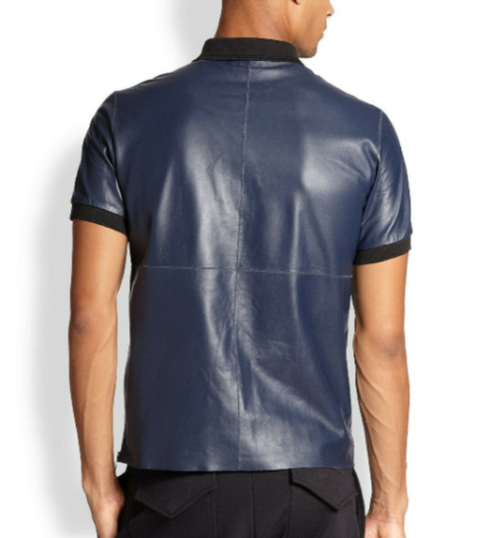 Dark Blue Leather T-Shirt .