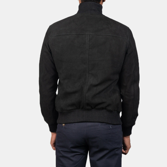 Noora New Men's 100% Real Lambskin Suede Black Bomber Biker Motorcycle Jacket With Designer Button & Pocket SU071