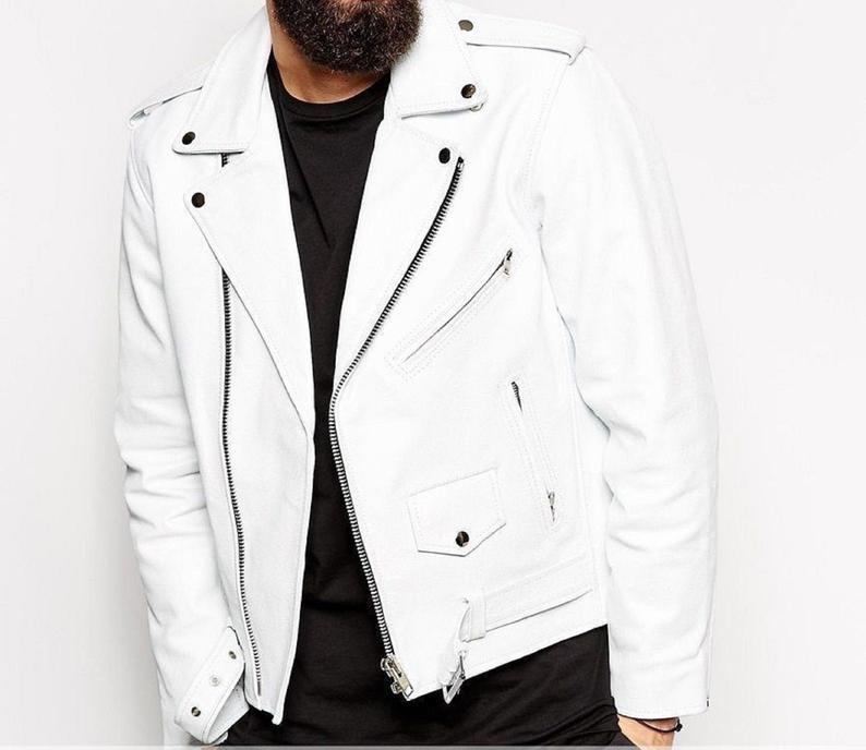 White Biker Leather Jacket For Men. Pure Napa Leather