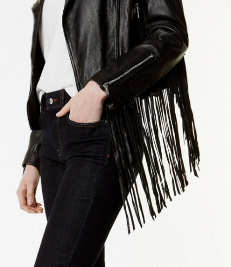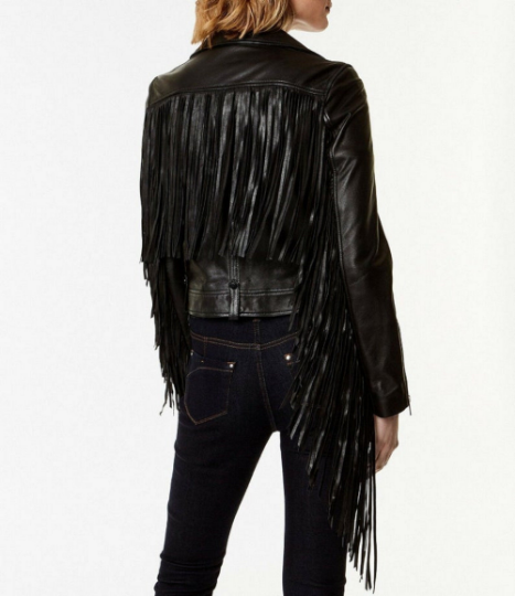 Women Black Pure Leather Fringe Style Jacket Nappa