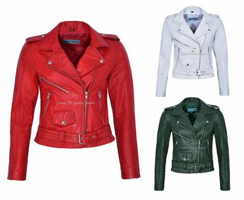 NOORA Brand Women's Genuine Leather Lambskin Motorcycle Jacket Biker B – Noora International