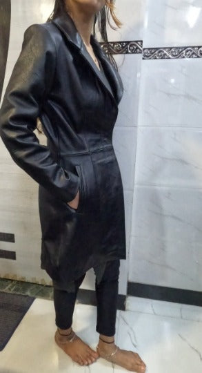 NOORA New Stylish Lambskin Soft Leather Women Black Genuine Leather Trench Coat, Designer Trench coat Custom to order (ALL SIZES) #RS613
