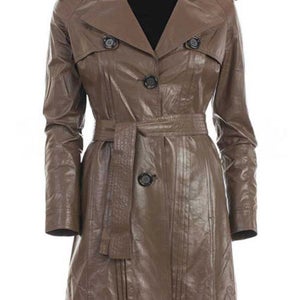 NOORA New Stylish Lambaskin Soft Leather Women Brown Genuine Leather Classic Trench Coat, designer coat, winter coat, long Belted coat-SB419