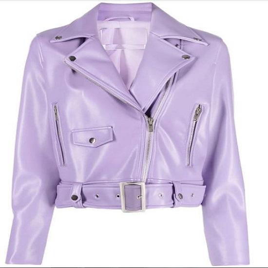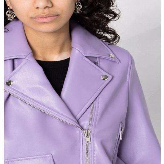 Noora Real Women's Biker Jacket with Zipper, Lavender Lambskin Leather Jacket, Western Style Party Wear Jacket