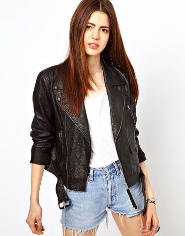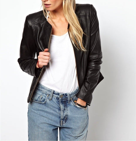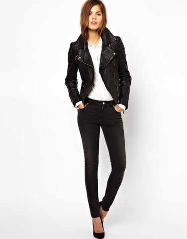 Noora Women’s solid black colour Motorcycle leather jacket ST0278 – Noora International