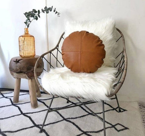 Noora Lambskin Leather Round Shape Cushion Cover Brown, Round Pillow Cover for Home Decor ST0143
