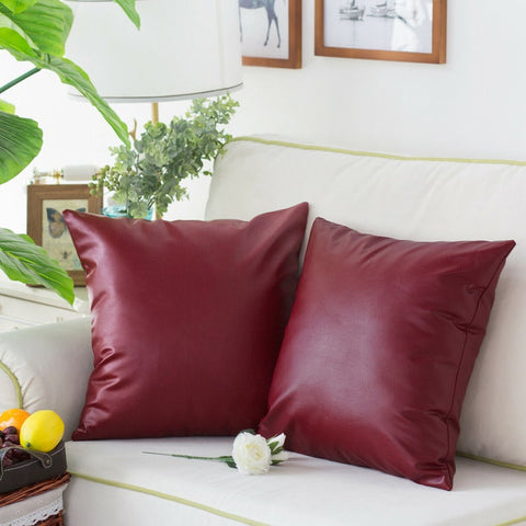 Noora Lambskin Leather Cushion Cover | Decorative Throw Case Square Cover | Burgundy Pillow Case Cover | Home &Living Decor | ST0140