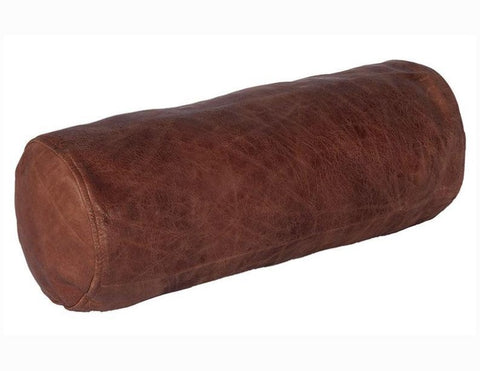 NOORA Lambskin Crunch Brown Leather Cushion Cover, Roll Case Soft Stylish Decent Cover, Round Shaped Bolster Pillow Cover,Home Decor YK081
