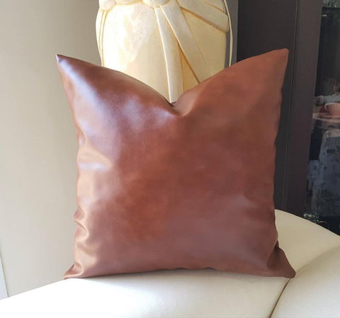 Noora Antique Brown Lambskin Leather pillow cover, Square Pillow, Housewarming, Home & Living Décor SU0148