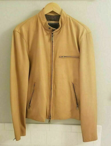 NOORA 100% Real Brand New Men's Handmade Biker Motorcycle Café Racer Distressed Brown Lambskin Real BS6