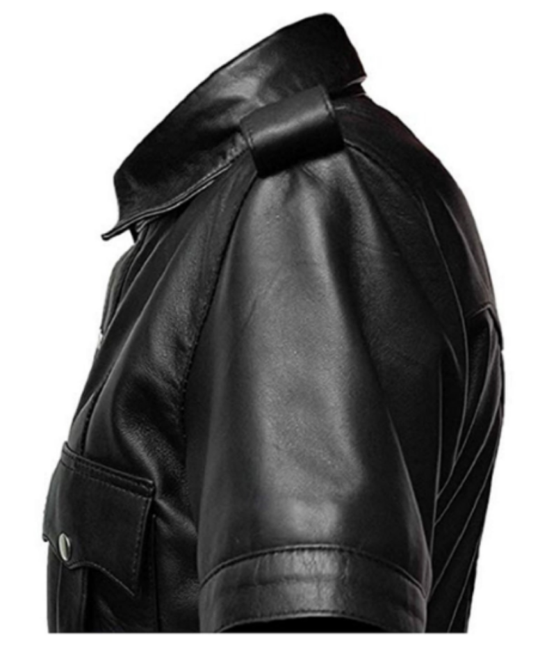 Noora Mens Black Lambskin Leather Police Uniform Shirt | Half Sleeve With Shoulder Strap With Button closure Black Shirt SU043