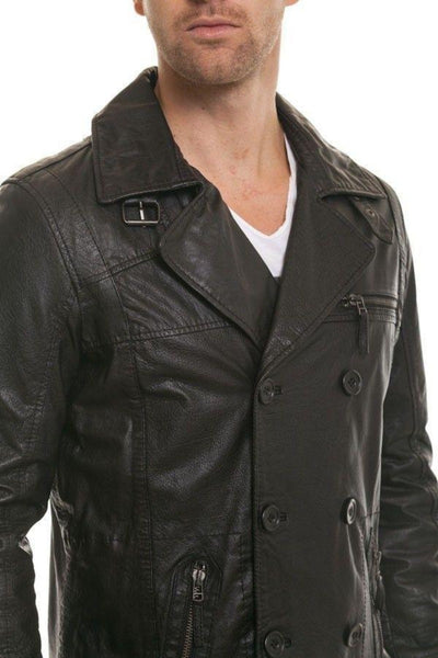 Noora Men's Black Notched collar leather jacket With Belted Jacket – Noora International