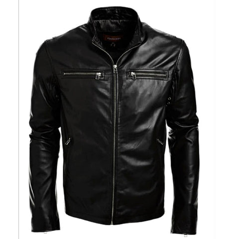 Noora Men's Lambskin Leather Biker Jacket With Zipper & Pocket | Classic Club Outwear Jacket Black SU013