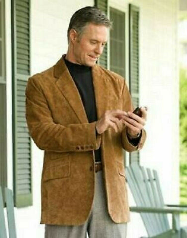 NOORA Mens Lambskin Brown Suede Motorcycle Blazer Jacket , Classic Tan Suede Biker Formal Blazer With Pocket | ST0121