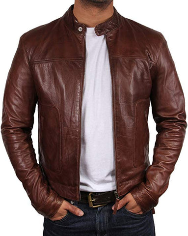 Noora New Lambskin Mens Dark Brown Leather Jacket | Casual Biker Jacket With Zipper | American Style Jacket YK092