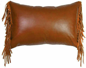 Side Fringes Real Leather Handmade Long Lumbar Pillow Case Cushion Cover 12*22