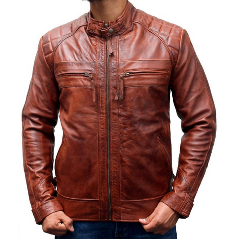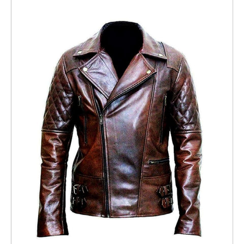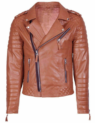 NOORA Mens Biker Motorcycle Brown Leather Jacket High quality Quilted Bomber Biker SU0432