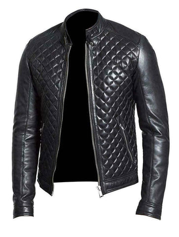 Noora Men's Lambskin Leather Black And White Combination Quilted Biker Jacket With Branded YKK Zipper | Black Leather Jacket SU052