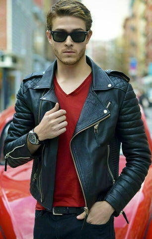 Noora Men's Genuine Lambskin Leather Jacket Biker Stylish Soft Jacket WA198