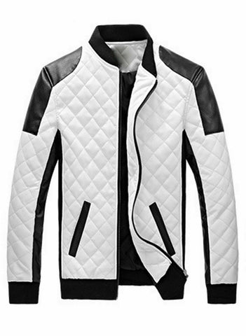 NOORA Mens Handmade Colour Block Quilted Biker Jacket , Bomber Jacket With Zipper & Pocket | ST0131