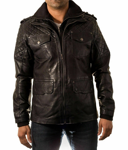 Noora Men's Genuine Lambskin Black Leather Jacket Coat Outwear Biker Motorcycle BS-141