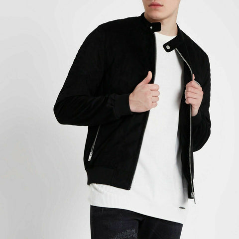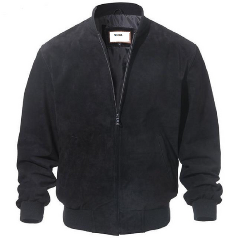 NOORA Men's Authentic Soft Black Suede Bomber Jacket Black Biker Motorcycle Jacket ,Zipper Closure Jacket YK36