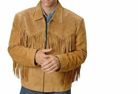NOORA Men's Lambskin Leather Brown Tan Suede Biker Jacket | Men's Vintage Fringe Jacket | ST016