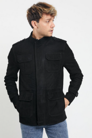 Noora Men's Black Style Suede Jacket With Button | Shirt Style Black Suede Jacket Lambskin Black Suede Jacket SU0412