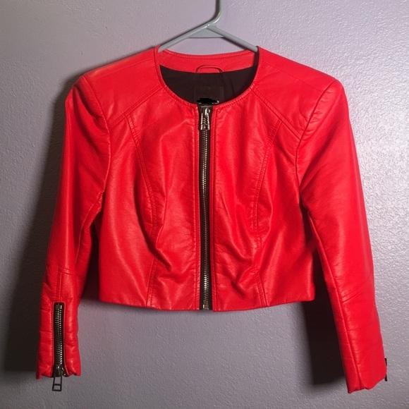 Noora Women's Lambskin Stylish Orange Biker Cropped Leather Jacket! Perfect for a night out, this collarless jacket adds a touch of edge to any outfit. Made with high-quality lambskin, it's a gift for her that's both stylish and durable.