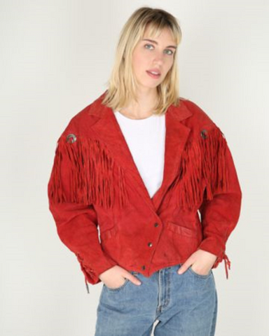 Noora Womens Authentic Red Suede Fringe Style Jacket Biker Motorcycle Lambskin Suede valentine's special Jacket