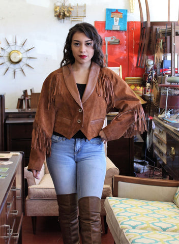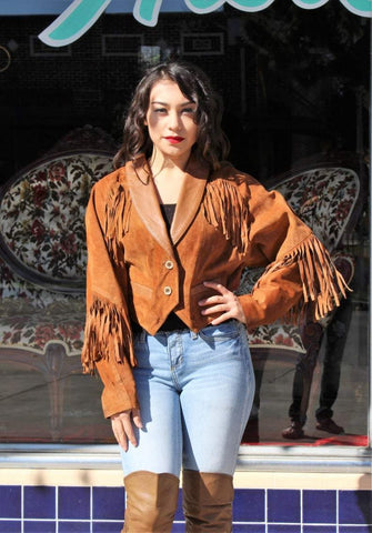 NOORA Womens Real Lambskin Golden Tan Suede Fringe Jacket | Cropped Jacket | Slim Fit Jacket | Gift For Her | ST074