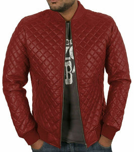 Noora Men's Quilted Bomber Casual Stylish Biker Original Lambskin Leather Jacket