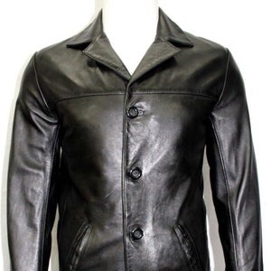 NOORA NEW 1970's Classic Men's Casual Overcoat Knee Length Style with buttons Black Real Leather Tre