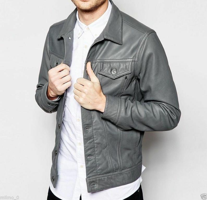 Charcoal Gray Leather Jacket Also Available Upon Request