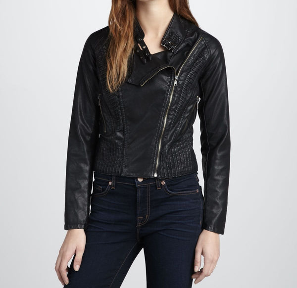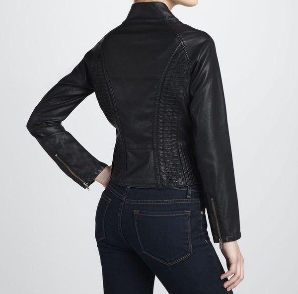 Noora Women's simple black Biker motorcycle Leather jacket ST0249 – Noora International