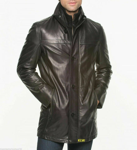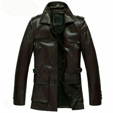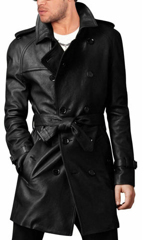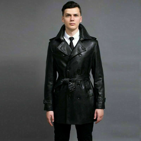 NOORA Men Trench Leather Coat Awesome Soft Lambskin For Stylish Looking WA419