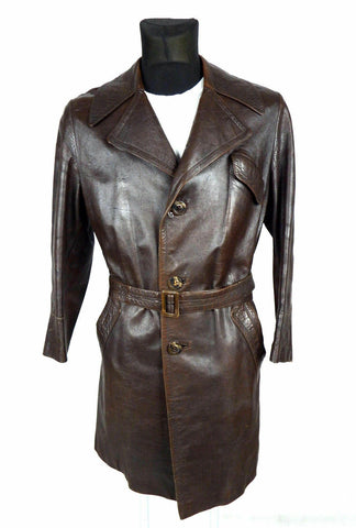 Noora Vintage Leather Trench Coat Overcoat Belted Single Breasted Men Brown SP85