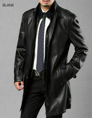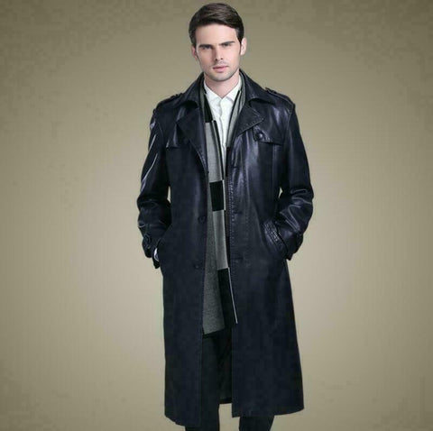 Noora Mens Leather Long Trench Coat Outwear Jacket Business Overcoat Slim Fit S6