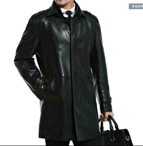NOORA Men Genuine Lambskin Leather Trench Coat Winter Overcoat Long Jacket QD662