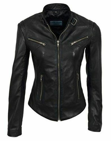 Noora mens 100 % pure leather biker jacket. highwayman type zip fastening. Adjustable waist. Boost your cool factor with this slim-fitting moto lambskin leather jacket. With zippered pockets, 2-tone sleeve stripes, moto collar and zippered cuffs, you'll have the spirit of riding a motorcycle to formal or casual events.100% soft lambskin leather with a very attractive looking perfect for cocktail, evening parties, nightclub, dance halls, proms, bar, club wear, leather jackets for winter, branded leather jackets , jackets for men slim fit in nature, motorcycle jackets for men