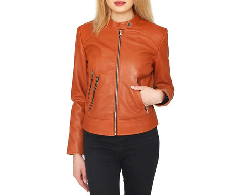 Noora Women's Tan Lambskin Leather Jacket, Motorcycle Slim Fit Jacket – Noora International