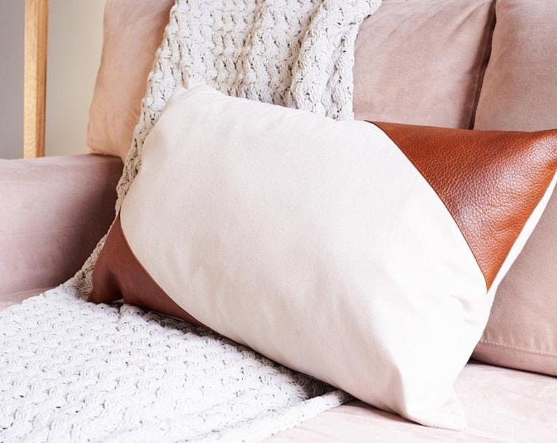 Noora Lambskin Leather Cushion Cover Mango Tan & White, Designer Pillow Cover, Decorative Accent Throw Lumbar Cover, Home Decor 0211