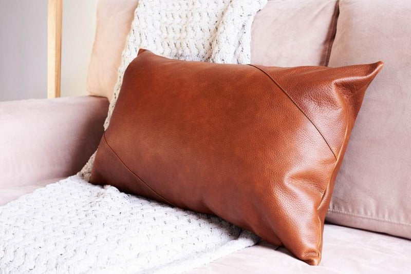 NOORA 100% Lambskin Distress Mango Tan Leather Pillow Cover Home Decor – Noora International