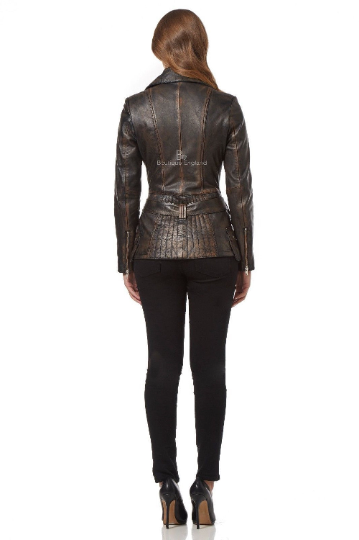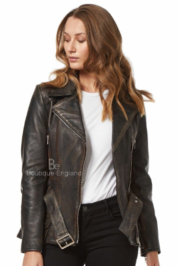 NOORA New Womens Lambskin Black Leather Jacket, Style Jacket, Biker Slim Fit Belted Designer Jacket rt123