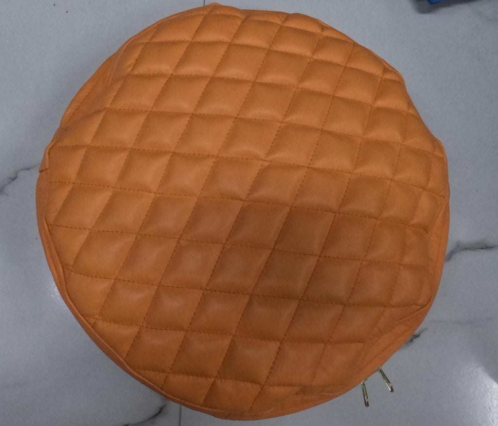 Noora Lambskin Leather Round Cushion Cover Orange | Embroidery Quilted Pillow Covers | Modern Luxurious Embroidery Cushion Cover | JS41