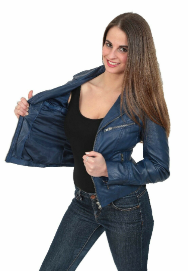 NOORA Women & Girls Lambskin Genuine Leather CROPPED Biker BLUE Jacket, Designer Morden Jakcet YK14