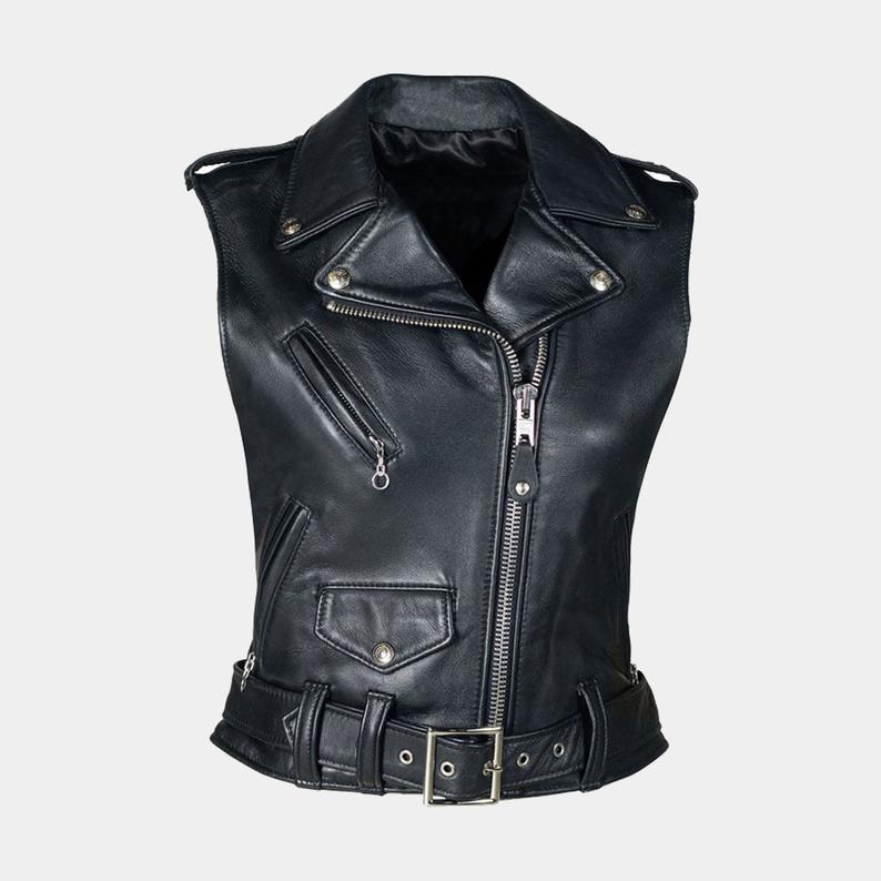 Noora New Womens Lambskin Black Leather Jacket Sleeveless Biker Jacket YK0221