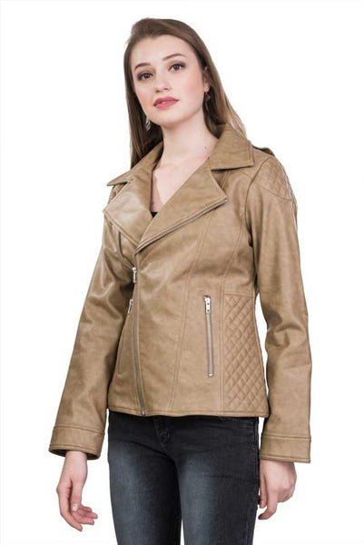 NOORA Womens Lambskin Leather Light Tan Leather Jacket Biker Jacket – Noora International