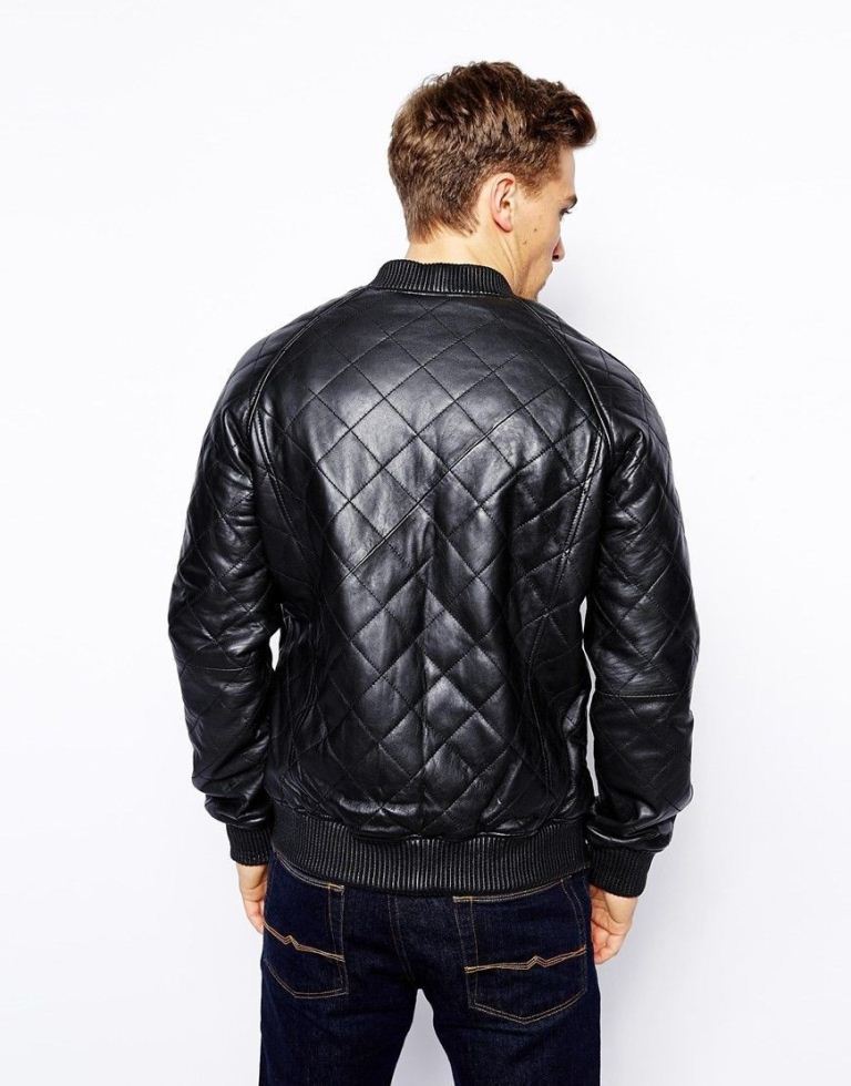 Noora Men’s black leather bomber jacket With Zipper & Pocket | Quilted Bomber Jacket |
